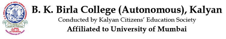 B. K. Birla College of Arts, Science and commerce (Autonomous), Kalyan a multi faculty premier institution of higher learning, affiliated to the University of Mumbai. The College was established in 1972, by Kalyan Citizens' Education Society with the blessings of Late Shri B. K. Birla ji and Late Smt. Sarala ji Birla. The College is spread over 20 acres of land (including B. K. Birla Public School) in the prime location of Kalyan city and developed as an eco-friendly campus. The College has been accredited by NAAC with 5 Star Status in 2002, reaccredited (2nd Cycle) with 'A' Grade (CGPA - 3.37) in 2008 and reaccredited (3rd Cycle) and awarded 'A' Grade (CGPA - 3.58) in 2014. The College has been granted 'Autonomous Status' by University Grants Commission and University of Mumbai from 2018 - 19